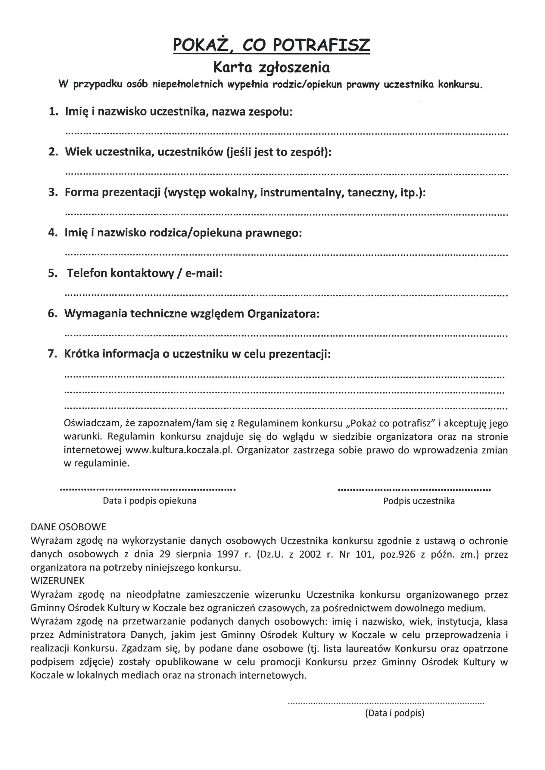 Gminny Ośrodek Kultury w Koczale zaprasza do udziału w konkursie „POKAŻ CO POTRAFISZ”