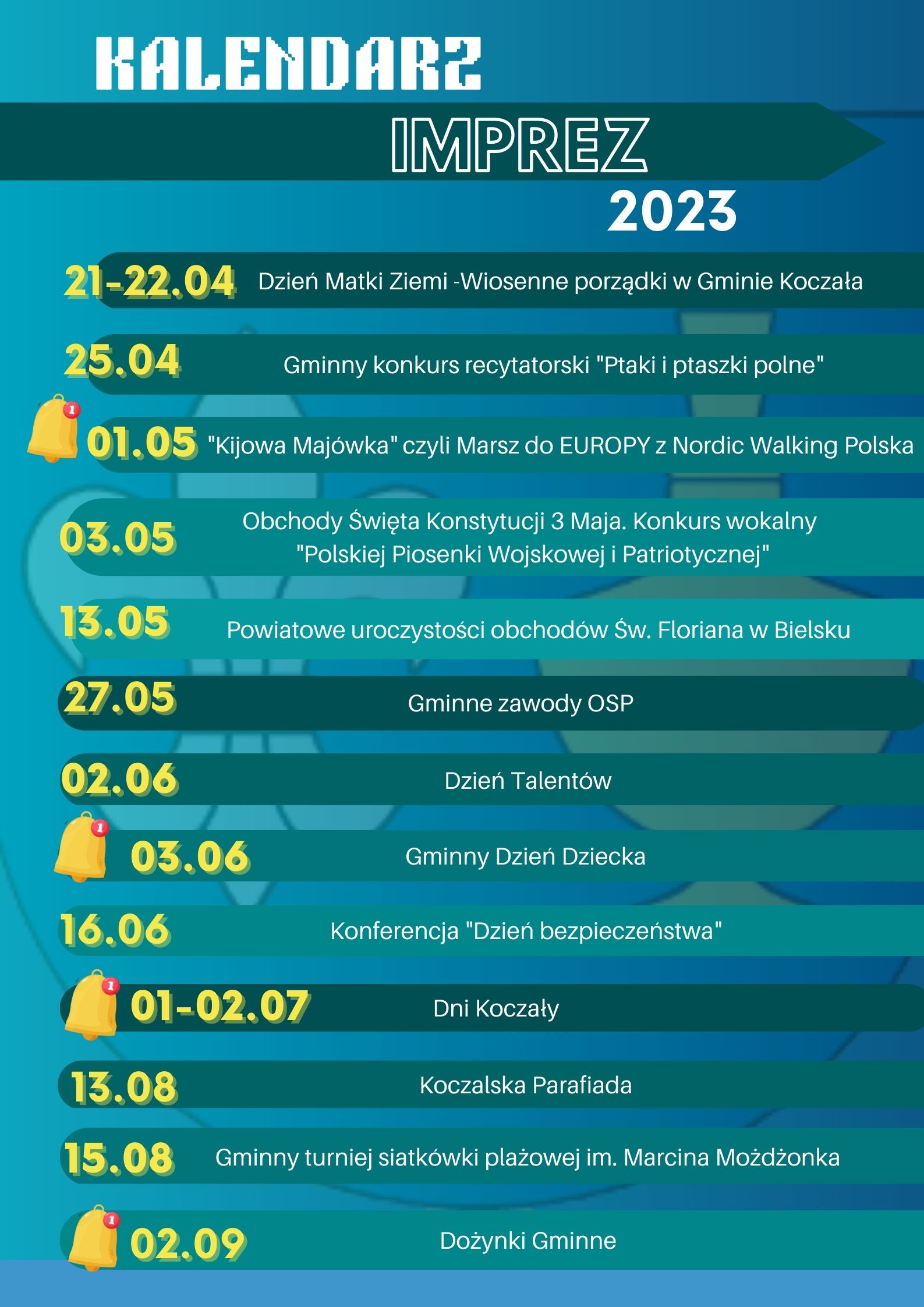 Zapraszamy do zapoznania się z kalendarzem imprez na nadchodzące miesiące. Mamy nadzieje, że każdy znajdzie coś dla siebie.