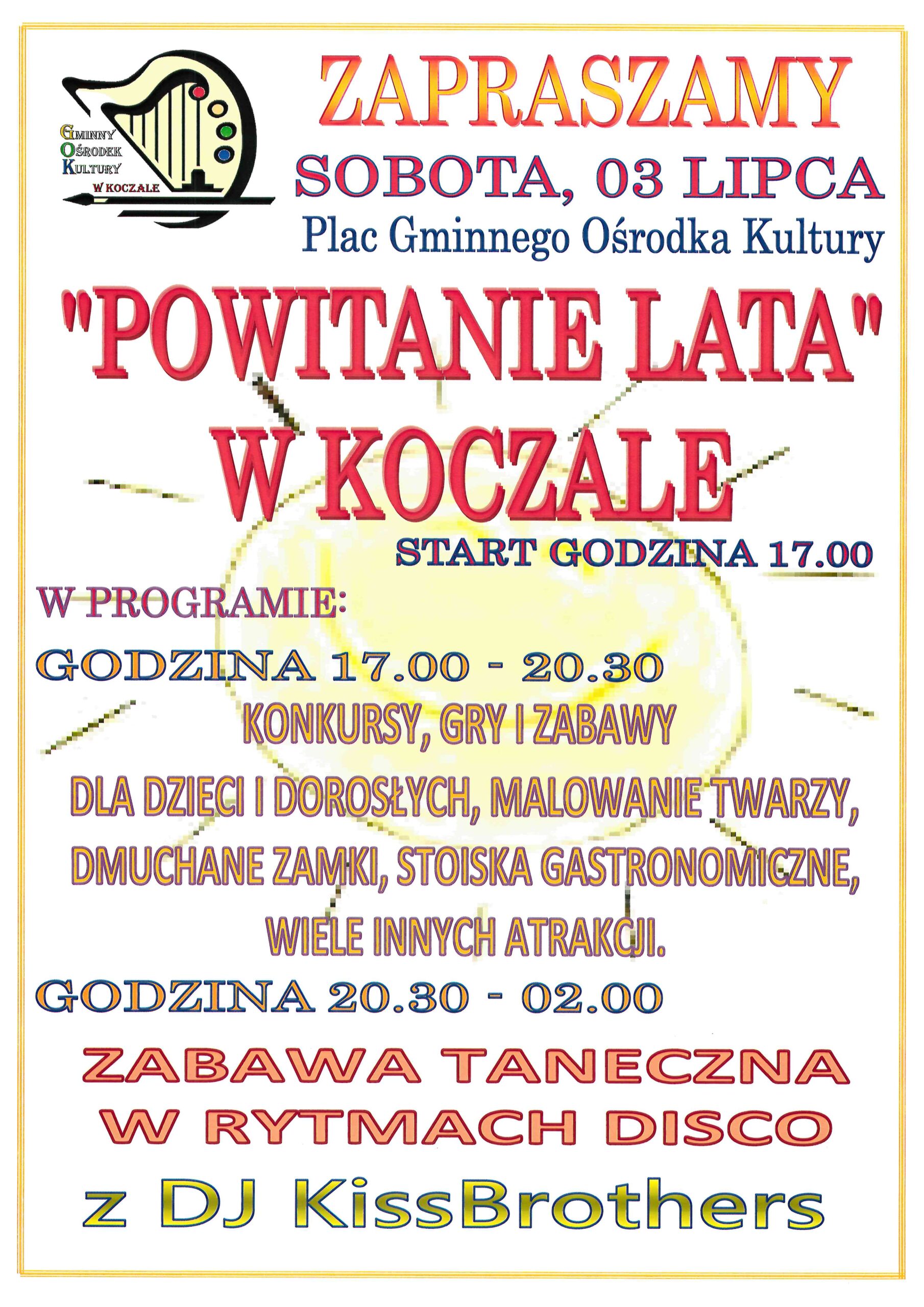 Gminny Ośrodek Kultury zaprasza w sobotę 3 lipca na festyn „Powitanie Lata”. Startujemy o godzinie 17.00.