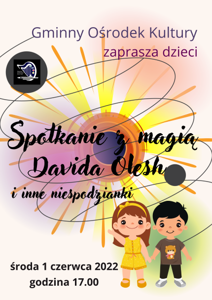 Gminny Ośrodek Kultury w Koczale zaprasza wszystkie dzieci już w środę 1 czerwca o godzinie 17.00 na niesamowite spotkanie z magią Dawida Olesh z okazji Dnia Dziecka.